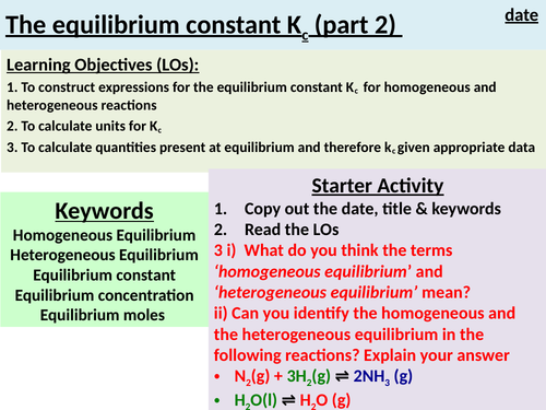 The Equilibrium Constant Kc Part 2 Teaching Resources