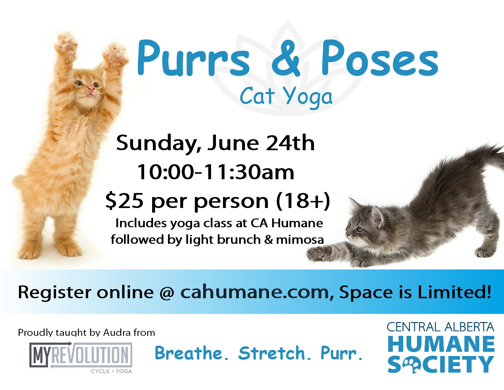 Cahumane On Twitter Introducing Our Purrs Amp Poses Cat Yoga Class Join Us June 24th At The Shelter For A Fun Yoga Class By Audra From Myrevolutioncy For 25 Our Adoptable Cats